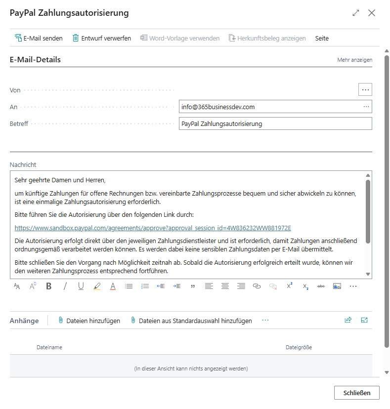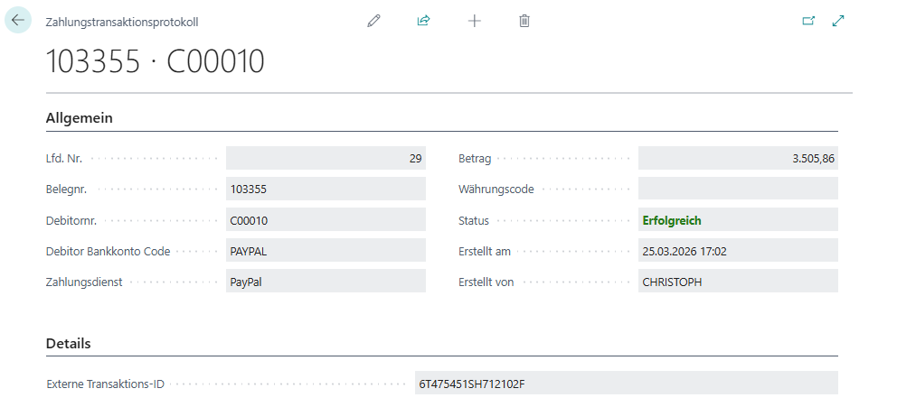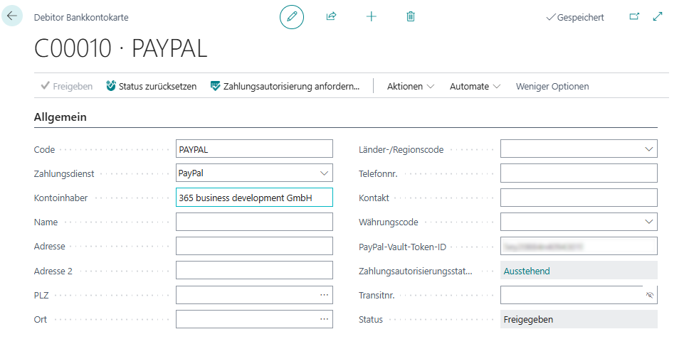 PayPal. - Eine erfolgreiche Zahlungsautorisierung für dieses Debitorbankkonto.