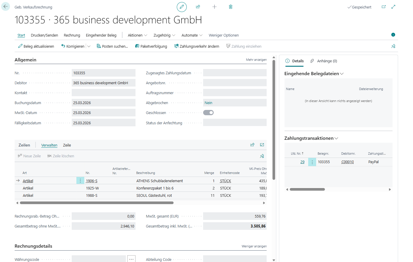 - Erstellen Sie eine Verkaufsrechnung mit passendem Zahlungsformcode.