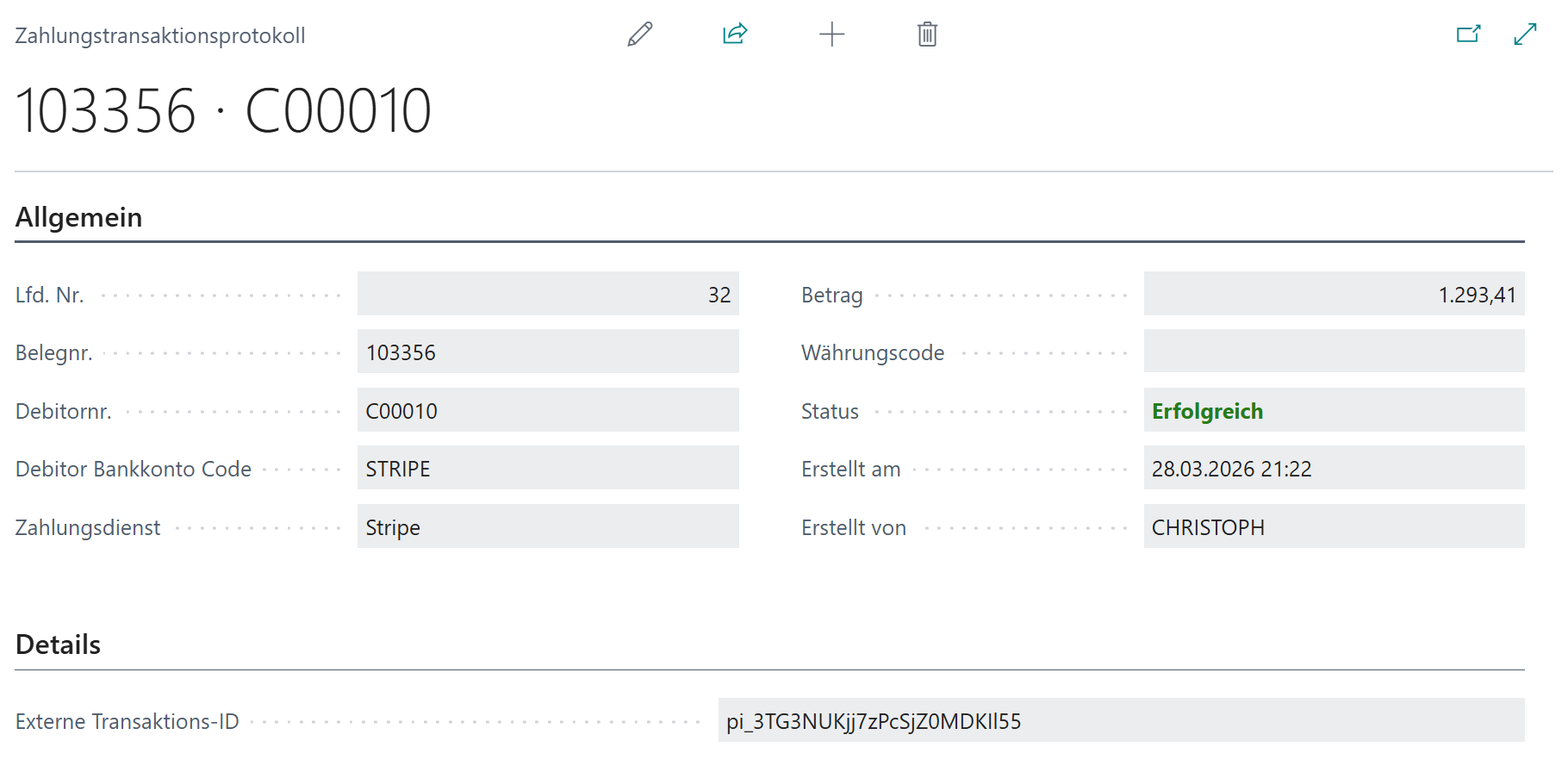 - Bei Erfolg wird die Rechnung automatisch ausgeglichen.