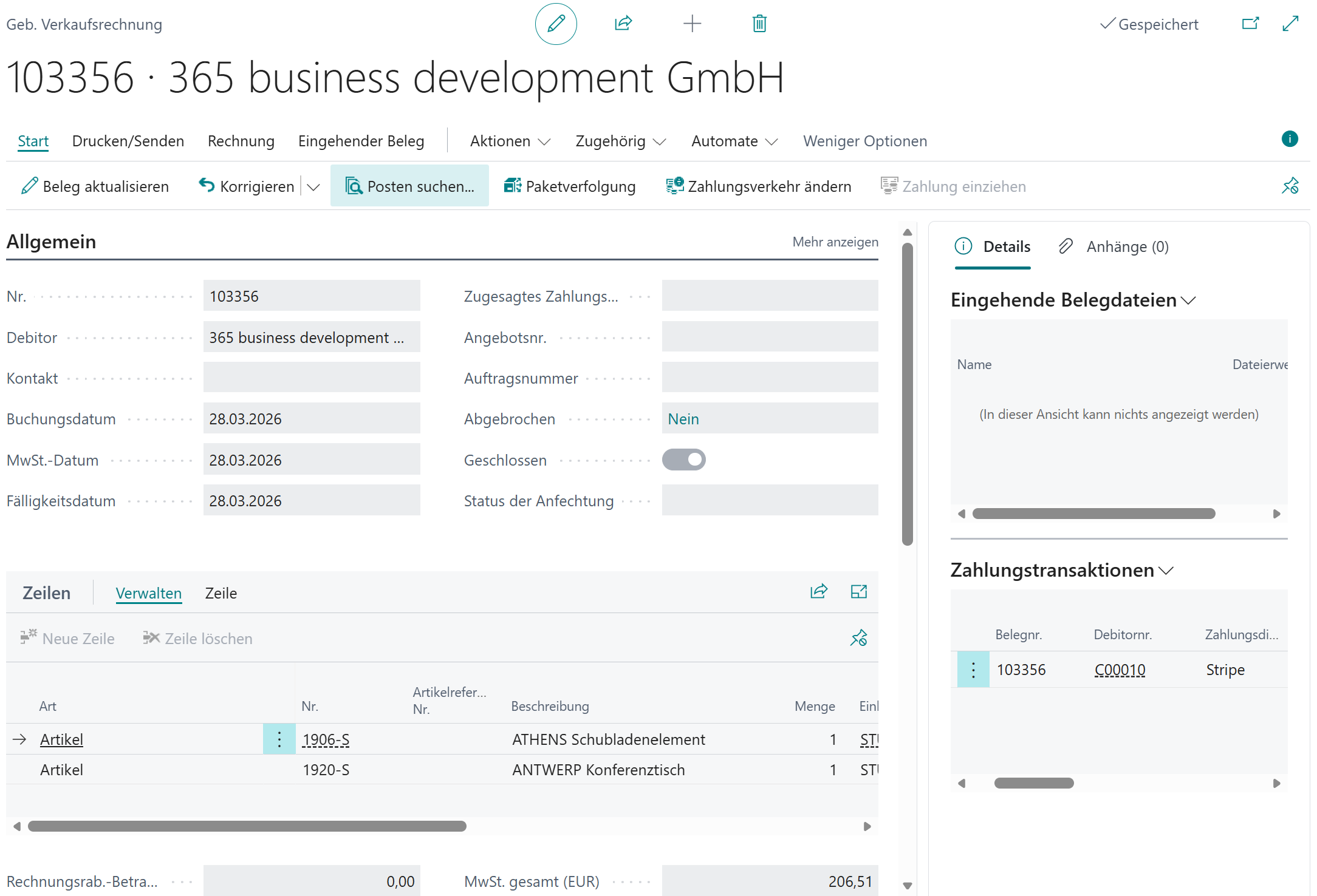 - Die Ursache finden Sie in den Zahlungstransaktionen der gebuchten Rechnung.