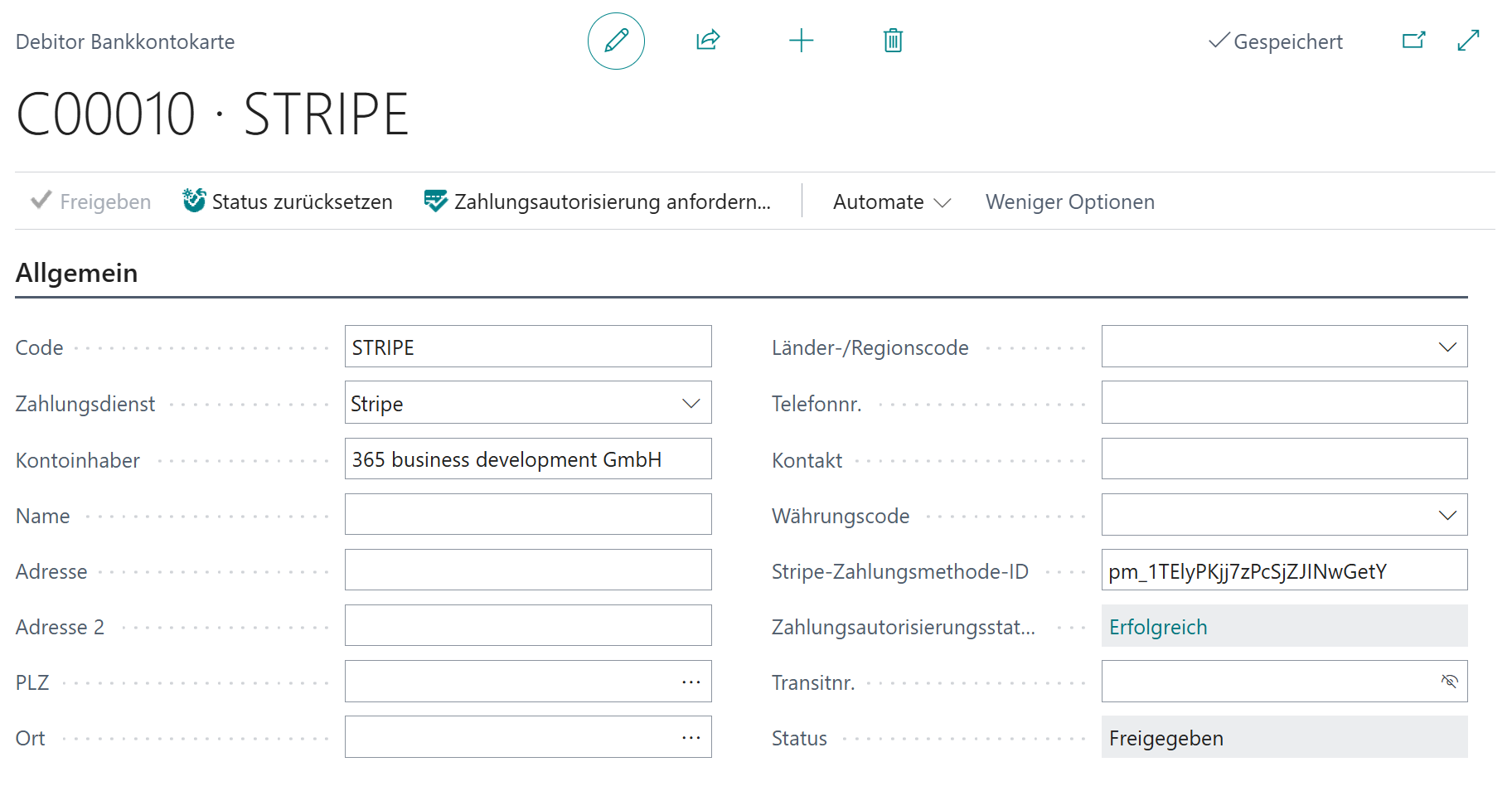 Stripe. - Eine erfolgreiche Zahlungsautorisierung für dieses Debitorbankkonto.