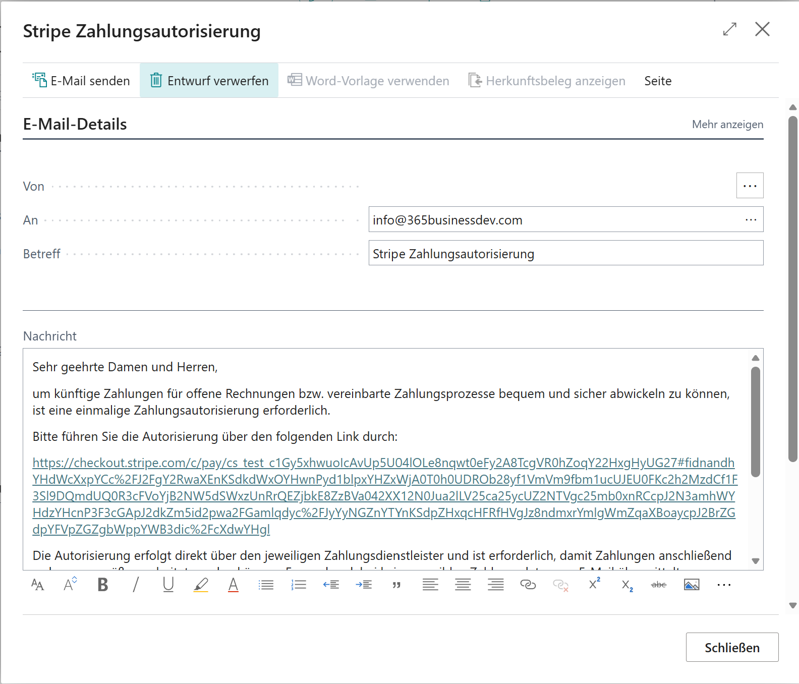 Beispiel E-Mail für Stripe: